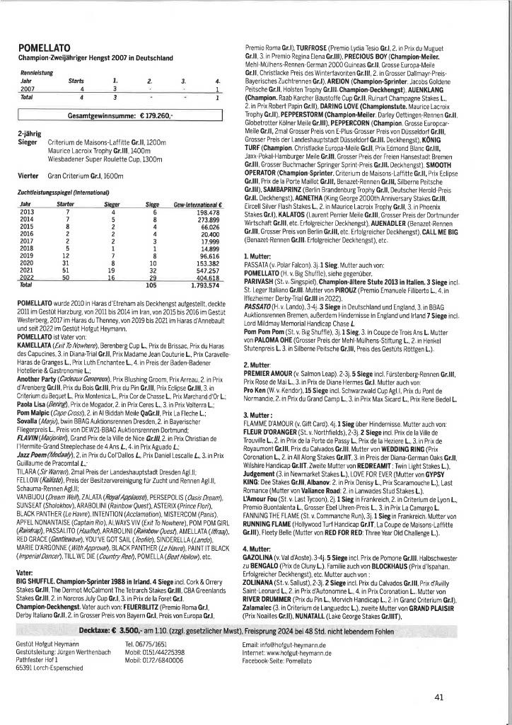 Der Big Shuffle Sohn Pomellato deckt für eine Decktaxe von 3.500 € plus MwSt